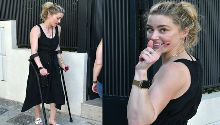 Despite her injury, Heard appeared all relaxed in a black dress and the crutches. She tied her hair in a messy yet stylish ponytail, showcasing her makeup-free face. Her outfits also included hoop earrings, layered necklaces, summery Chloe sandals, and a Golden strapped Apple watch.