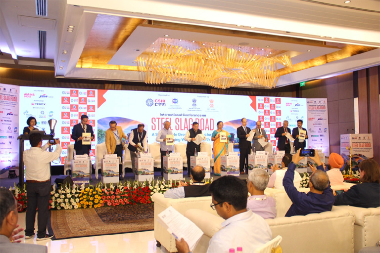 Dr. Ranjeet Mehta, Executive Director of PHDCCI, Mr. Ranjan Dhar, Director and Vice President of Sales and Marketing at Arcelor Mittal and Nippon Steel India, and Mr. VR Sharma, Vice Chairman of JSP Group Advisory Services also spoke on the transformative potential of steel slag in road construction and its role in sustainable manufacturing.