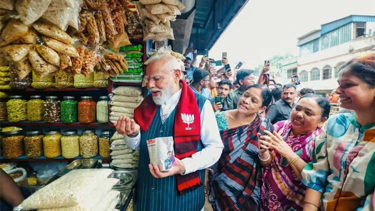 Prime Minister Narendra Modi made a surprise stop during his election campaign in West Bengal, pausing at a roadside stall in Jhargram to enjoy a serving of ‘Jhalmuri’.