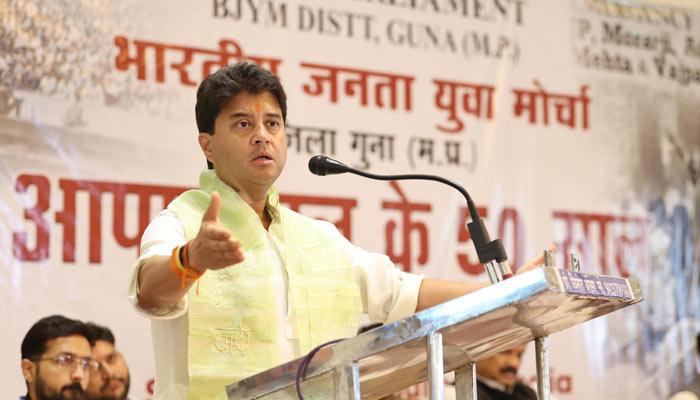 केंद्रीय संचार एवं पूर्वोत्तर विकास मंत्री ज्योतिरादित्य सिंधिया गुना में आपातकाल की 50वीं बरसी पर भाजपा युवा मोर्चा द्वारा आयोजित युवा संसद में शामिल हुए । कार्यक्रम को संबोधित करते हुए सिंधिया ने कहा कि 25 जून 1975 का दिन भारत के इतिहास में काले अक्षरों में दर्ज किया जाएगा। यह वो रात है जिसे कोई भी देशवासी भुला नहीं सकता। क्योंकि इस दिन कांग्रेस पार्टी की कुर्सी हिल रही थी, और सत्ता के नशे में हमारे चुने हुए जनप्रतिनिधियों को काल कोठरी में डाल दिया गया था।