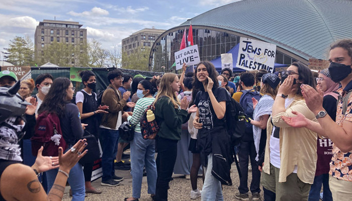 “Our tuition dollars are still going toward the brutalization of Palestinians,” the 21-year-old physics major said. “So, ultimately, even though our president has said, ‘Oh, I’m not going to call the cops. Oh, I’m not going to beat up students,’ that’s still not enough, and that’s not the bare minimum for us.”