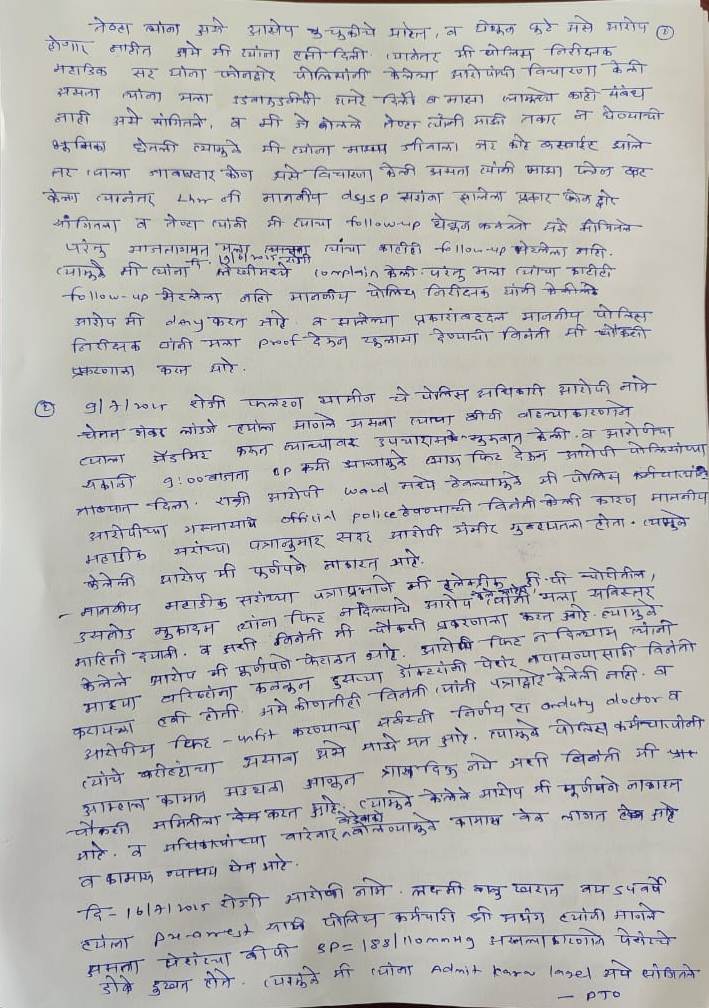 तनाव बढ़ने के बाद डॉक्टर के खिलाफ विभागीय जांच शुरू कर दी गई थी। उन्होंने इस कार्रवाई का विरोध करते हुए वरिष्ठ पुलिस अधिकारियों को पत्र लिखा था और कहा था कि “मेरे साथ अन्याय हो रहा है, अगर ऐसा चलता रहा तो मैं आत्महत्या कर लूंगी।” लेकिन शिकायत के बावजूद कार्रवाई नहीं हुई।